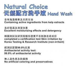 Natural Choice洗手液含有海藻提取物和天然甘油成分,因此在清潔後具有極佳的保濕效果。